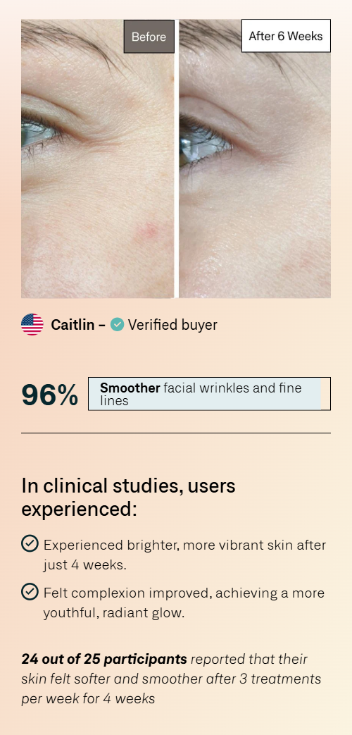 Optimized energy output and two clinically proven wavelengths of light (red 633nm and near-infrared 830nm) work on a cellular level to stimulate new collagen, reduce fine lines and wrinkles, and reduce sun damage and the visible signs of aging.
